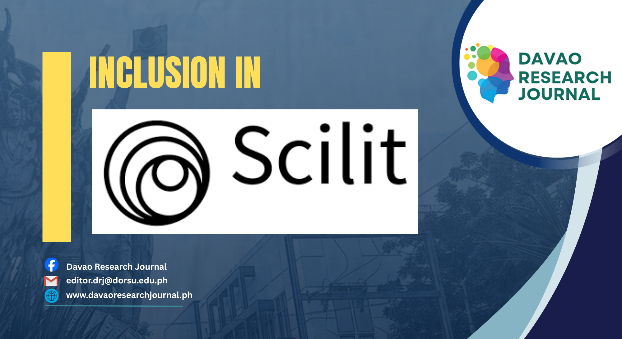 The Scilit database of scholarly works was developed and maintained by MDPI, an open access scholarly publisher. Currently the Davao Research Journal has 143 journal articles indexed and included in the MDPI Scilit database. The name Scilit uses components of the words “scientific” and “literature.” By being included in the SciLit database, this ensures the widest circulation of Davao Research Journal articles in the internet, joining other worldclass Filipino journals already included in the Scilit database like The Philippine Journal of Fisheries, The Philippine Journal of Science and Philippine Social Science Journal.